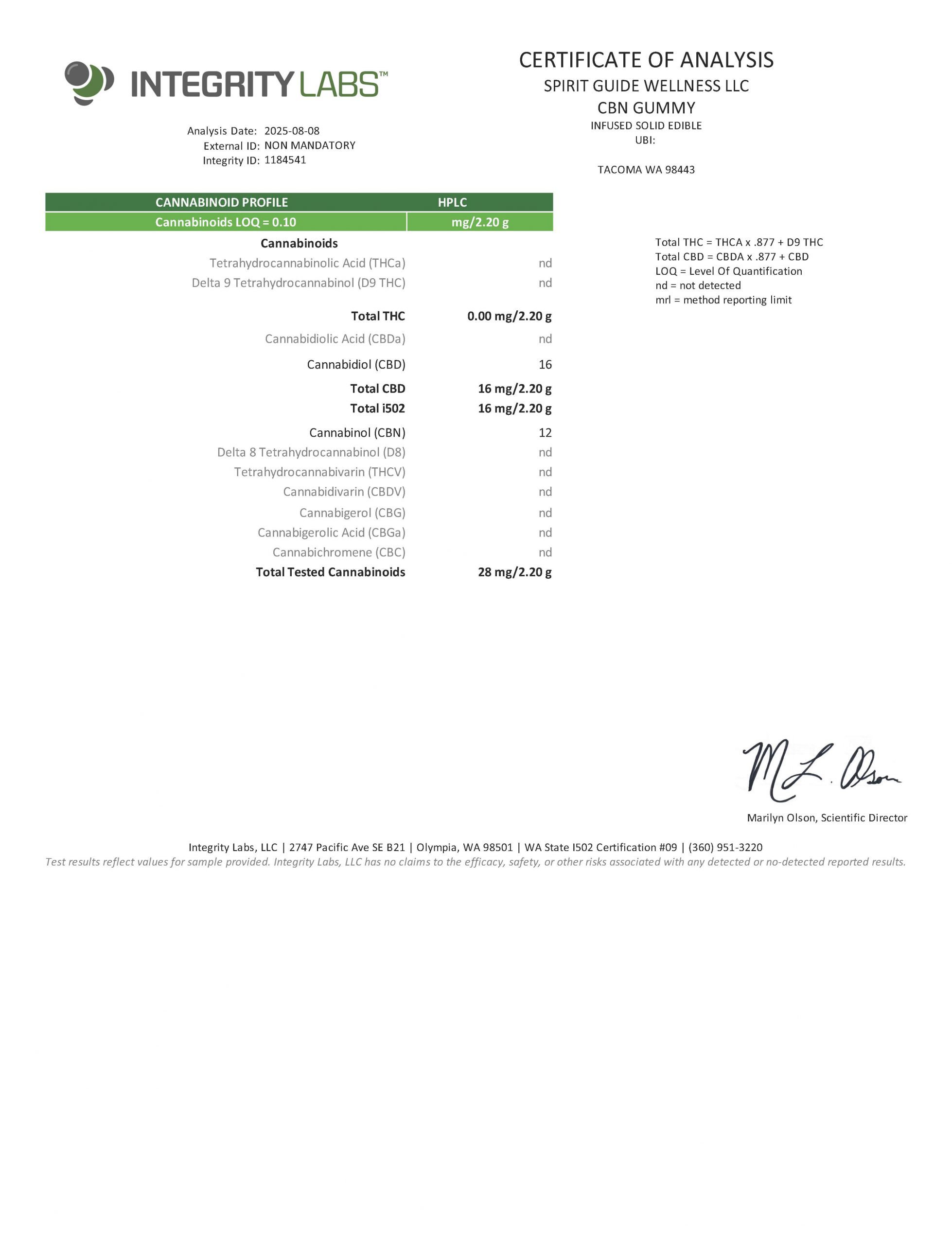 Cane sugar, tapioca syrup, distilled water, pear juice concentrate, citric acid, organic coloring, all natural flavoring, CBN & CBD isolates