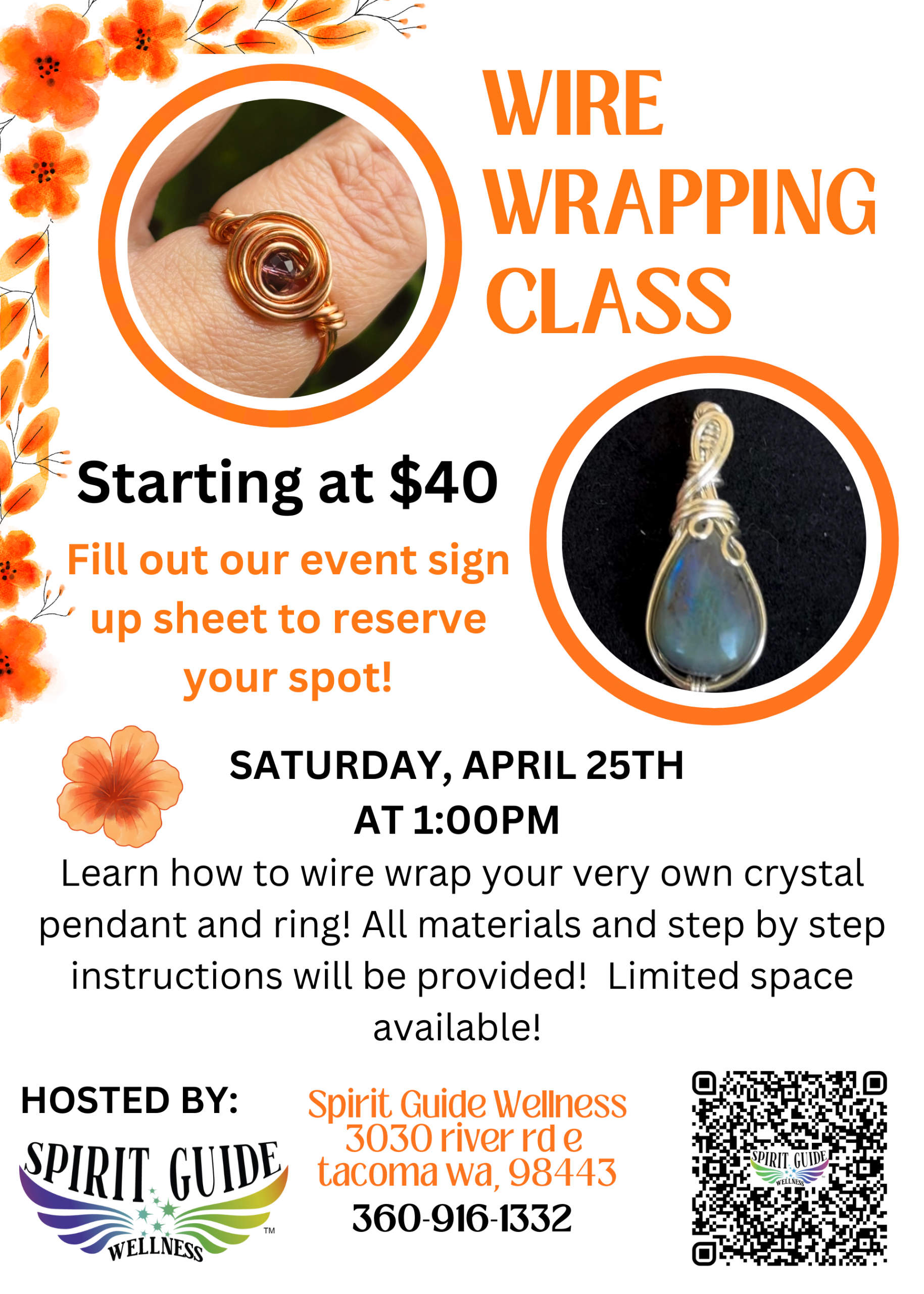 Learn how to wire wrap your very own crystal pendant and ring! All materials and step by step instructions will be provided! Limited space available!